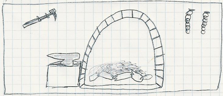 Has entrado en lo que parece ser una casa de un herrero. Pero, por suerte o por desgracia, este no se encuentra aqui en estos momentos.